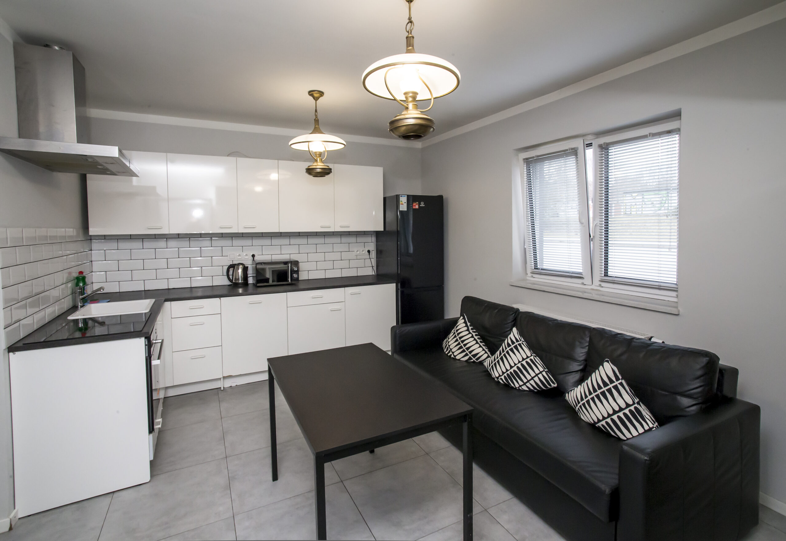 Pokój wyposażony w bardzo duże, ponad dwumetrowe łóżko podwójne oraz prywatną łazienkę z prysznicem typu walk-in. Goście mają do dyspozycji aneks kuchenny z lodówką, mikrofalówką, czajnikiem elektrycznym oraz niezbędnymi przyborami, a także zestaw do parzenia kawy i herbaty. Wnętrze zlokalizowane na parterze oferuje biurko do pracy, szafę na ubrania oraz telewizor z płaskim ekranem i dostępem do serwisów streamingowych. Na wyposażeniu znajdują się również świeże ręczniki i pościel, a w całym pomieszczeniu obowiązuje całkowity zakaz palenia.