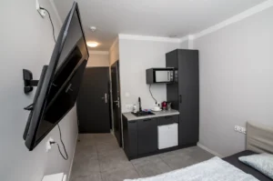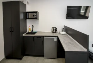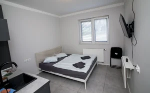 Przytulne pokoje z własną łazienką i aneksem kuchennym w standardzie. Korzystaj z szybkiego Wi‑Fi oraz bezpłatnego parkingu. Wybierz domową wygodę kilka minut od dworca PKP, śpij komfortowo i nie przepłacaj za pobyt.